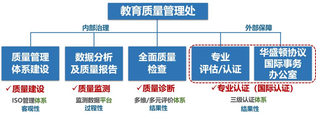 l 質量管理體系:借鑒先進管理理念、借助國內專業認證、依托華協國際平臺,建設具有天大特色的全面教育質量管理體系,持續推動學校教育質量文化內涵建設;