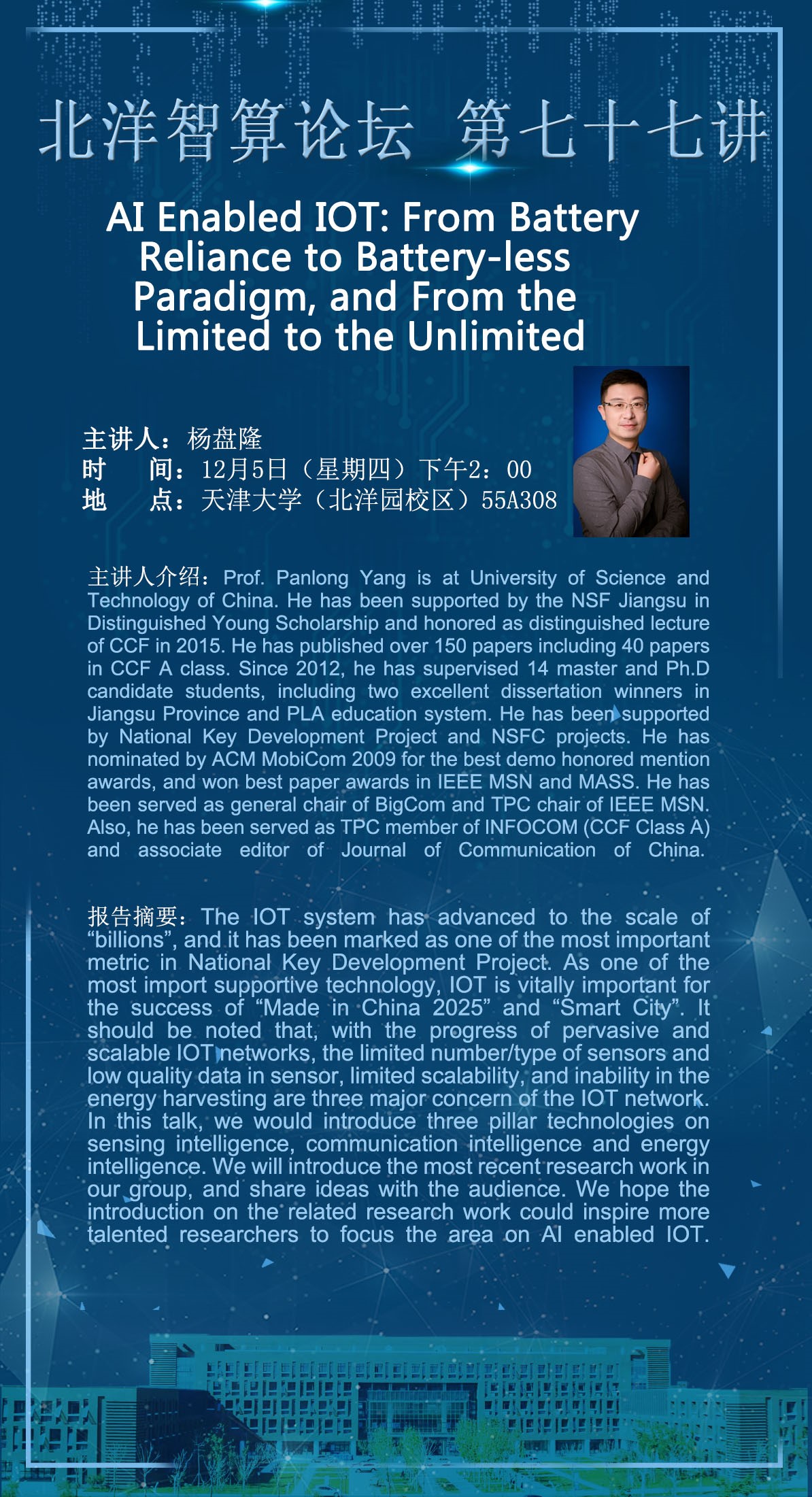 楊盤隆,江蘇省自然科學杰出青年基金獲得者(2015),CCF杰出演講者(2015)。在知名國際學術會議與期刊雜志累計發表文章150余篇,其中CCF A類論文40篇,自2012年以來指導學生共計14人次,獲省部級研究生優秀論文獎2人次,提名2人次。申請發明專利10余項。