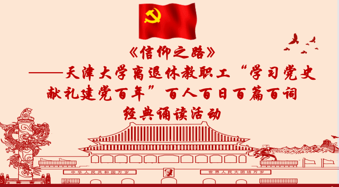 心使命,做到學史明理、學史增信、學史崇德、學史力行,在新時代不斷加強黨的建設,汲取不斷前進的智慧和力量,離退休工作處在全校離退休教職工中舉辦《信仰之路》——天津大學離退休教職工“學習黨史 獻禮建黨百年”百人百日百篇百詞經典誦讀活動,充分展現我校離退休教職工愛黨愛國的深厚情懷、昂揚向上的精神風貌和永葆政治本色的堅定信念。