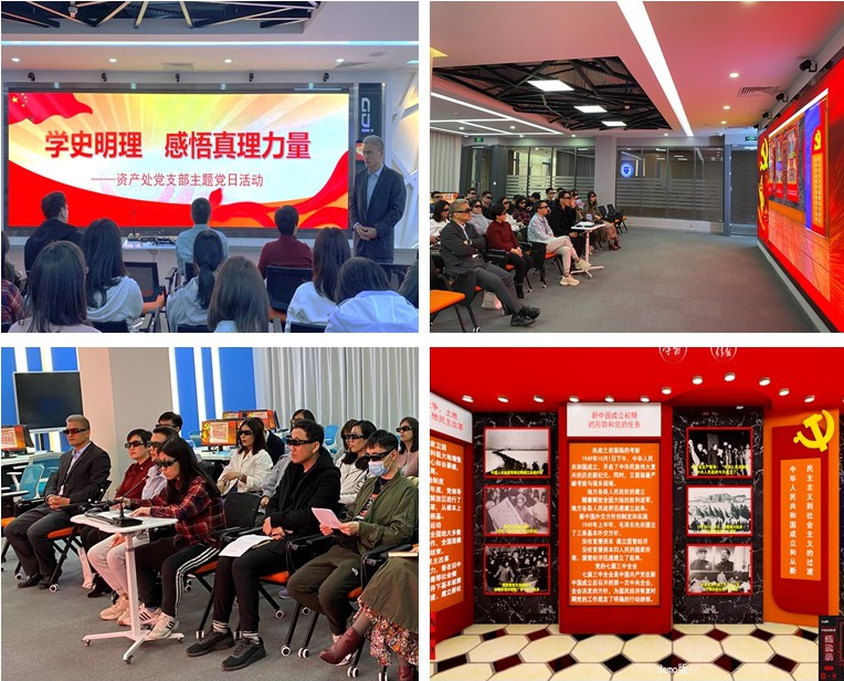 為深入開展黨史學習教育,4月2日下午,資產處黨支部在北洋園校區第47教學樓虛擬現實實驗教學中心,以“學史明理,感悟真理力量”為主題,組織全體黨員和入黨積極分子,參觀利用虛擬現實技術(VR)搭建的《中國共產黨的九十年》紅色展覽。