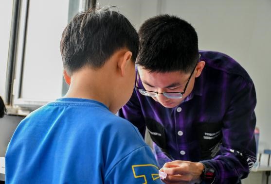 下午,求是學部電工電子黨支部以黨小組的形式分別面向教育中心一至六年級同學開展“春風化雨微支教”活動。各黨小組成員帶領同學們開展折紙、涂鴉、物理實驗、寓言故事以及豐富多彩的素質拓展活動,啟發了同學們的動手能力和團隊合作意識。