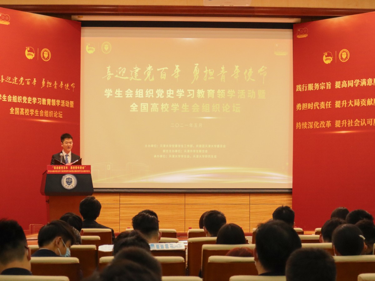 5月1日,“喜迎建黨百年,勇?lián)嗄晔姑睂W(xué)生會組織黨史學(xué)習(xí)教育領(lǐng)學(xué)活動暨全國高校學(xué)生會組織論壇在天津大學(xué)舉行,來自清華大學(xué)、上海交通大學(xué)等全國33所高校學(xué)生會、研究生會的代表們齊聚天大,共同學(xué)黨史、悟思想,加強(qiáng)新時代高校學(xué)生會組織的建設(shè)水平,更好地團(tuán)結(jié)引領(lǐng)廣大青年同學(xué)成為堪當(dāng)民族復(fù)興重任的時代新人,用扎實成績慶祝建黨100周年。