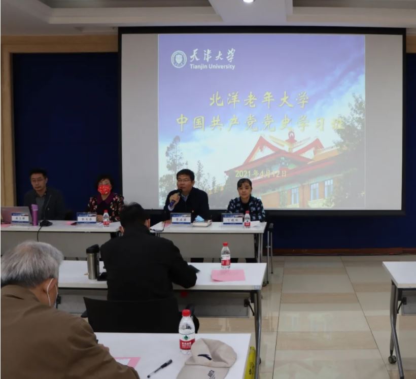 北洋老年大學校長丁曉玲、常務副校長張文茹分別對北洋老年大學疫情防控總體要求以及黨史學習班班級、課程安排進行了詳細介紹。