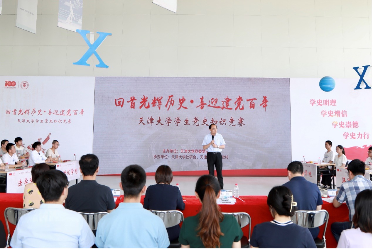 為深入學習貫徹習近平總書記在黨史學習教育動員大會上和在清華大學考察時的重要講話精神,在全體學生中開展黨史學習教育,引導學生學史明理、學史增信、學史崇德、學史力行,天津大學黨委學生工作部舉辦學生黨史知識競賽,以賽促學,用黨的奮斗歷程和偉大成就教育學生鼓舞斗志、堅定信念、砥礪品格。黨委學生工作部部長趙欣、校團委書記管虹、黨委宣傳部副部長李嘉毅、黨委學生工作部副部長王開、機械學院黨委副書記劉岳、馬克思主義學院黨委副書記靳瑩出席大賽。來自機械學院、精儀學院等15個學院選派的代表隊和各學院學工辦主任、黨建指導教師、學生黨員代表以及各代表隊親友團參加活動。