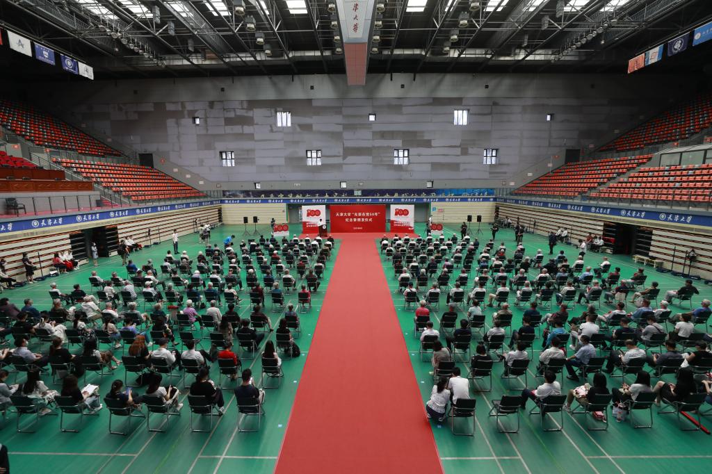 本站訊(通訊員陳偉唯)6月18日上午,天津大學“光榮在黨50年”紀念章頒發儀式在衛津路校區體育館舉行。165名獲得“光榮在黨50年”紀念章的老黨員代表,校領導李家俊、元英進、鞏金龍、譚欣、張力新、古瑤、劉寧、賈啟君以及黨建工作領導小組成員單位主要負責同志,各院級黨組織書記,專職組織員,黨務秘書,2021年新發展學生黨員代表等出席儀式。頒發儀式由校黨委常委、副校長鞏金龍主持。