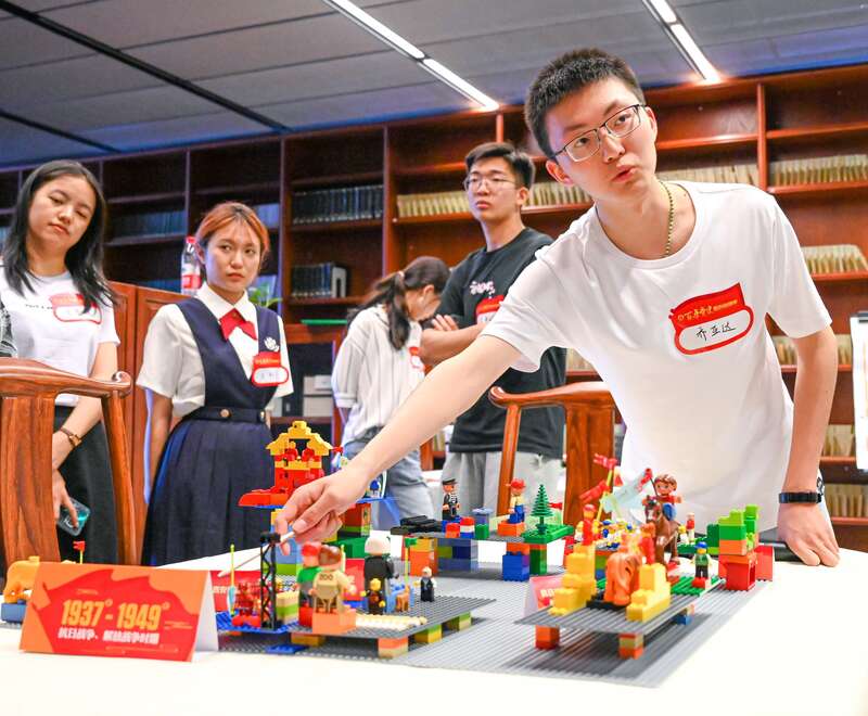 學生們花了4個多小時,用樂高零件搭建起一個個場景:中共一大、國共第一次合作、南昌起義、長征、開國大典、改革開放、十九大……每位同學都會對自己所搭建的場景講一個生動的黨史故事,一個個故事將共產黨的紅色“血脈”連接在一起,形成了共產黨人在百年征程中的精神譜系。