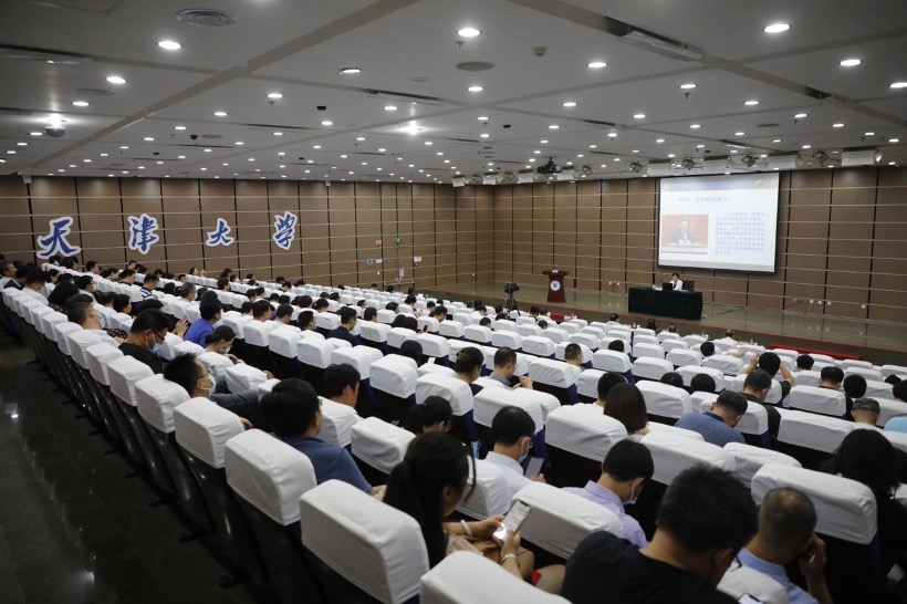 本站訊 (通訊員 陳思 攝影 于福旺)6月29日,天津大學(xué)舉辦校院黨委理論學(xué)習(xí)中心組(擴(kuò)大)專題報告會,由國家級教學(xué)名師、全國高校思政課教師“影響力標(biāo)兵人物”、教育部全國高校優(yōu)秀思政課示范課百人巡講團(tuán)成員、馬克思主義學(xué)院孫蘭英教授帶來題為“感悟當(dāng)代中國馬克思主義真理和實踐力量”的理論輔導(dǎo)報告。黨委書記李家俊等校領(lǐng)導(dǎo)班子成員、中層領(lǐng)導(dǎo)干部、教工黨支部書記、學(xué)生黨支部書記300余人聆聽了報告。報告會由黨委副書記趙美蓉主持。