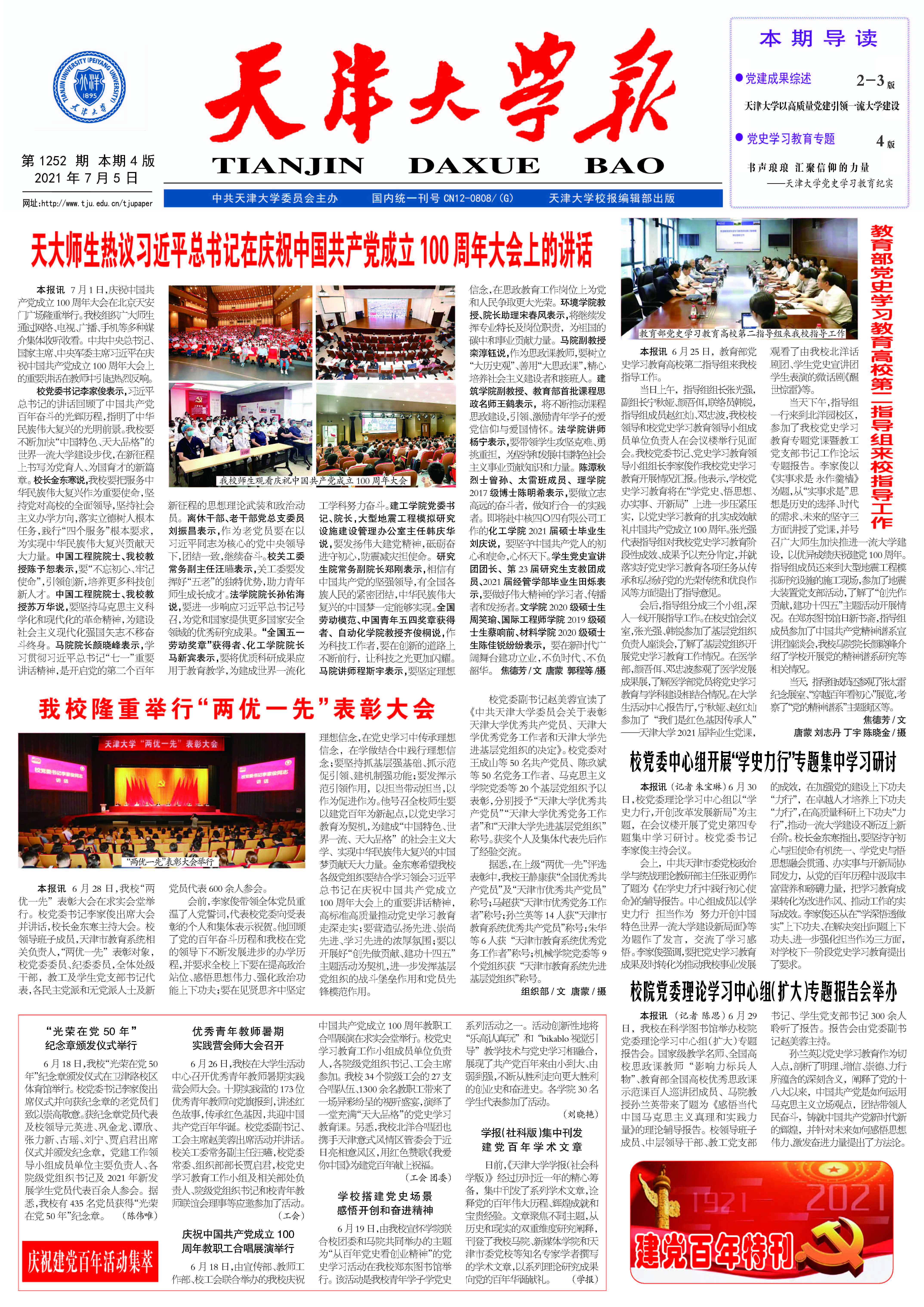 ●天大師生熱議習近平總書記在慶祝中國共產黨成立100周年大會上的講話