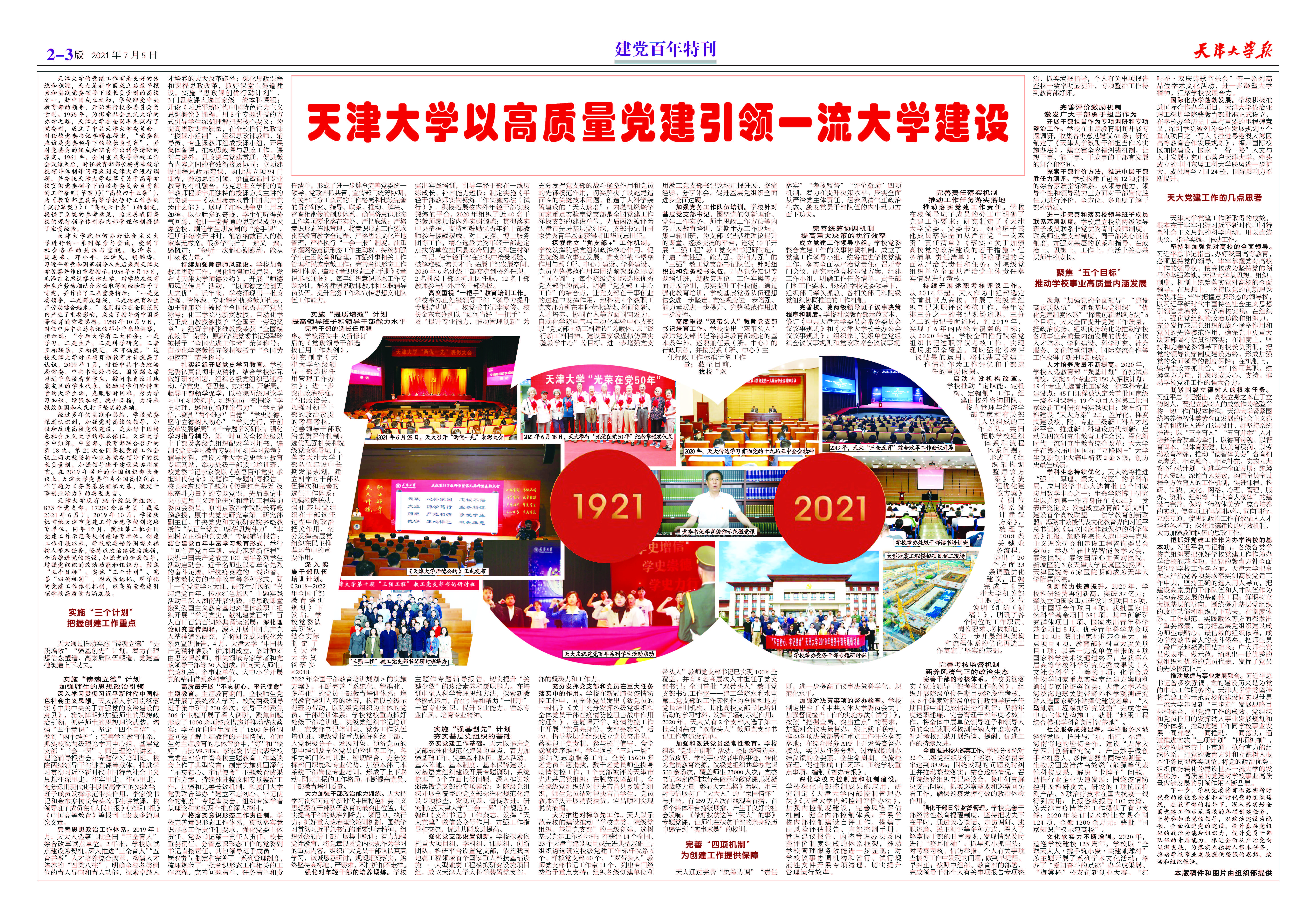 ●天津大學以高質量黨建引領一流大學建設
