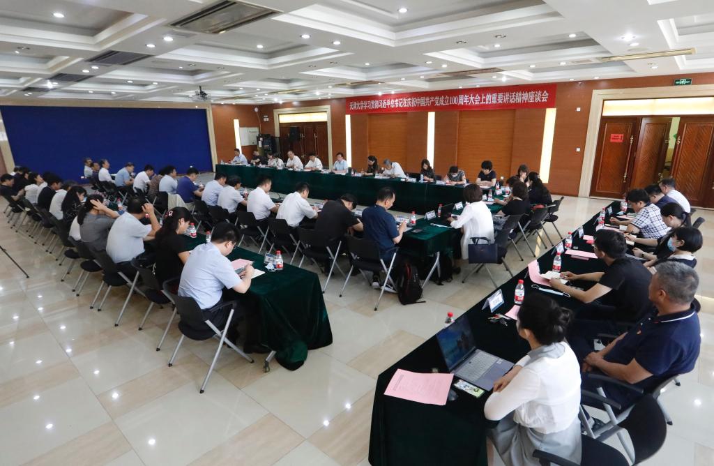 本站訊(記者趙暉 攝影唐蒙)2021年7月9日上午天津大學(xué)召開學(xué)習(xí)貫徹習(xí)近平總書記在慶祝中國共產(chǎn)黨成立100周年大會上的重要講話精神座談會。全體在津校領(lǐng)導(dǎo),黨辦校辦、組織部、宣傳部、統(tǒng)戰(zhàn)部、學(xué)工部、教工部、校團(tuán)委、校工會、離退休工作處、人文社科處負(fù)責(zé)同志,各院級黨組織書記,受邀參加“七一”觀禮的教師代表,黨員師生代表,黨外教師代表等參加座談。校黨委書記李家俊作總結(jié)發(fā)言,會議由天津大學(xué)黨委副書記趙美蓉主持。