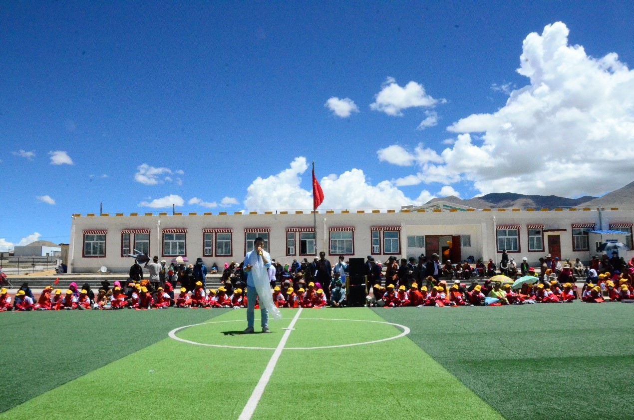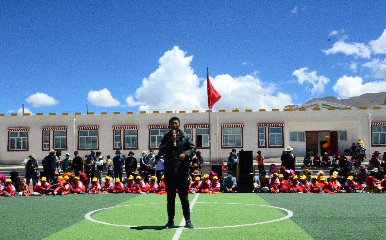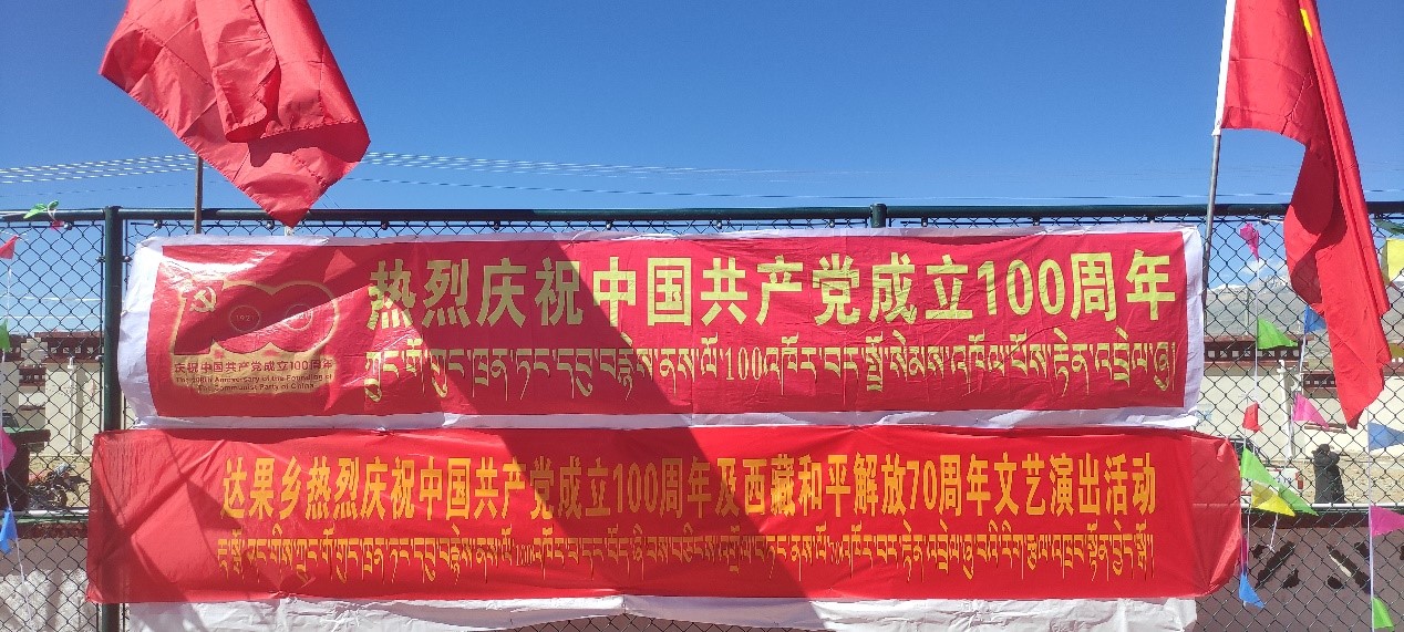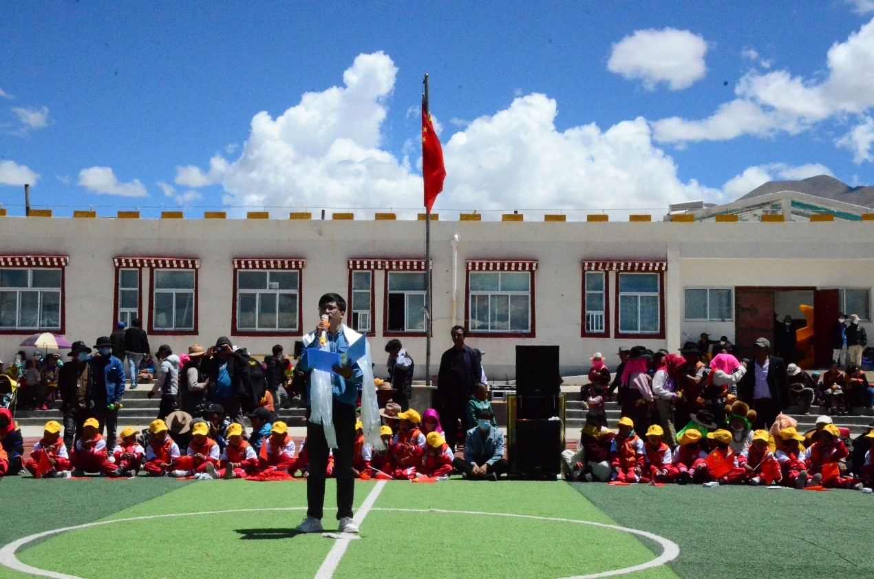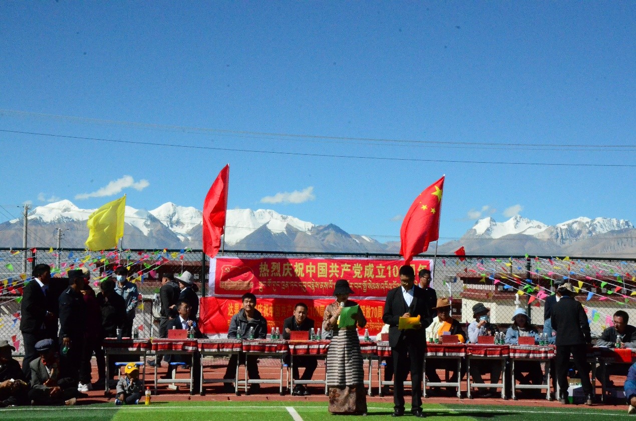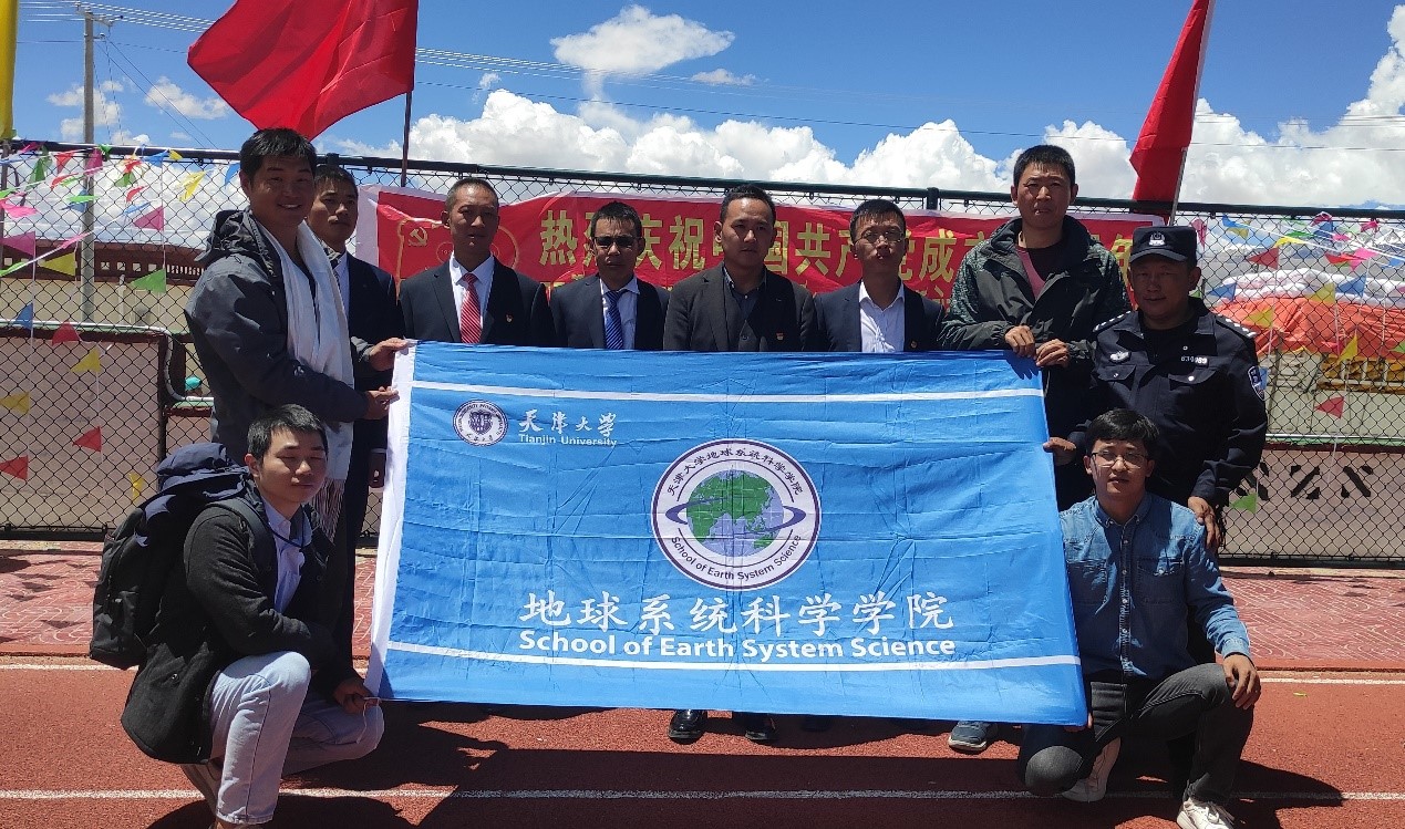 本站訊(通訊員 范心語)2021年6月,天津大學地科院構造地貌中心徐勝課題組來到西藏自治區那曲市尼瑪縣達果鄉,開展國家自然科學基金和國家重點研發計劃項目野外科學考察工作,得到了當地黨委、政府和各族干部群眾的大力支持。6月29日上午,正值中國共產黨百年華誕到來之際,我院師生與達果鄉各族干部群眾齊聚達果鄉小學,載歌載舞,共慶“中國共產黨成立100周年暨西藏和平解放70周年”。