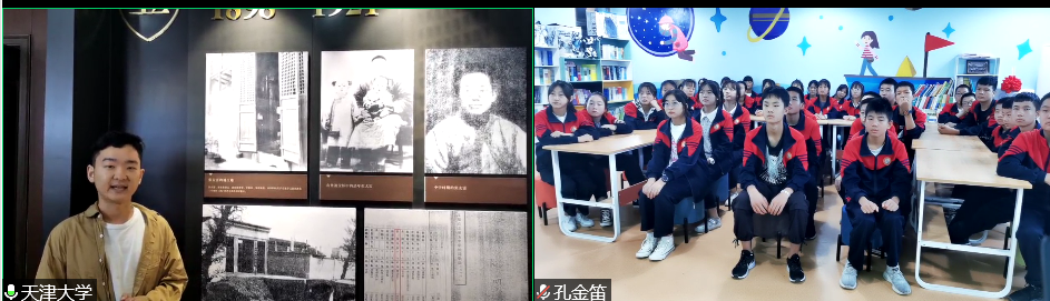 在張太雷烈士紀念館中,一場“沉浸式云研學”活動正在進行。“張太雷,原名曾讓,后改名太雷。為何改為太雷,大家帶著這個問題,隨我一起走進太雷同志短暫而偉大的一生”太雷班學員劉航江為兩校學子講述了太雷烈士的事跡。“愿化作震碎舊世界驚雷”的誓言震撼著每一個聽眾。