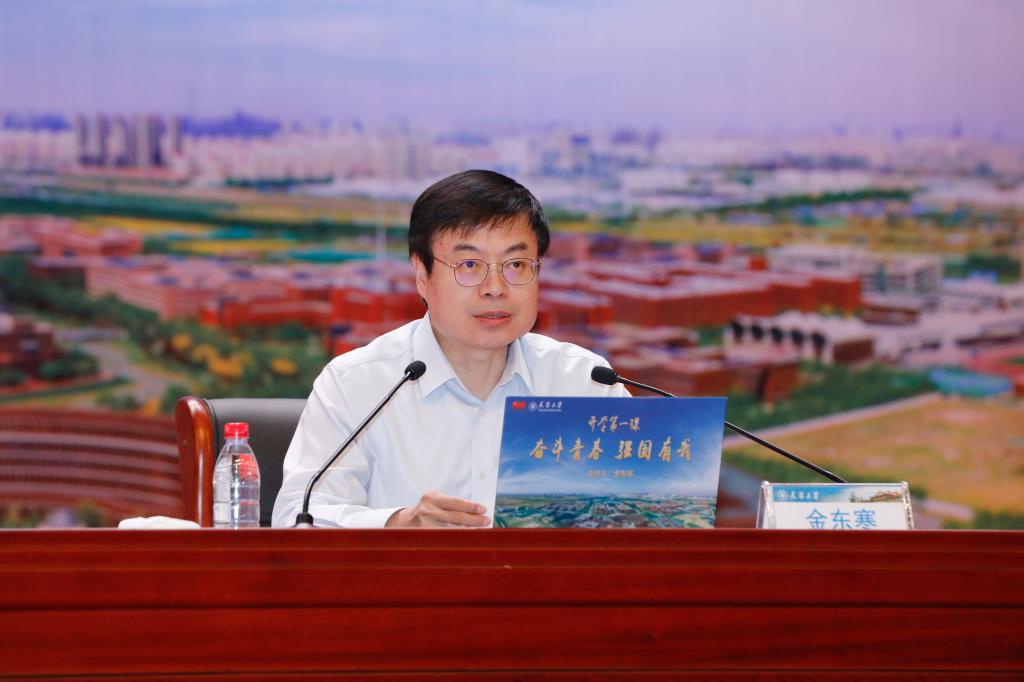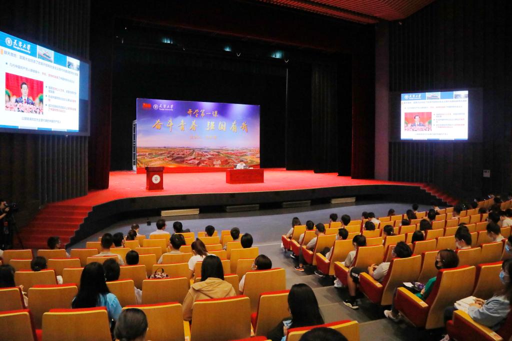 本站訊(記者 張華 攝影 郭程)9月23日,在中國共產黨成立100周年之際,中國工程院院士、天津大學校長金東寒在北洋園校區求實會堂為2021級全體新生講授開學第一課。他以“奮斗青春 強國有我”為題,與學生們講黨史國史、聊責任擔當、立鴻鵠之志、話美好未來,引導同學們樹立為祖國為人民永久奮斗、赤誠奉獻的堅定理想,自覺肩負起實現中華民族偉大復興的歷史重任。
