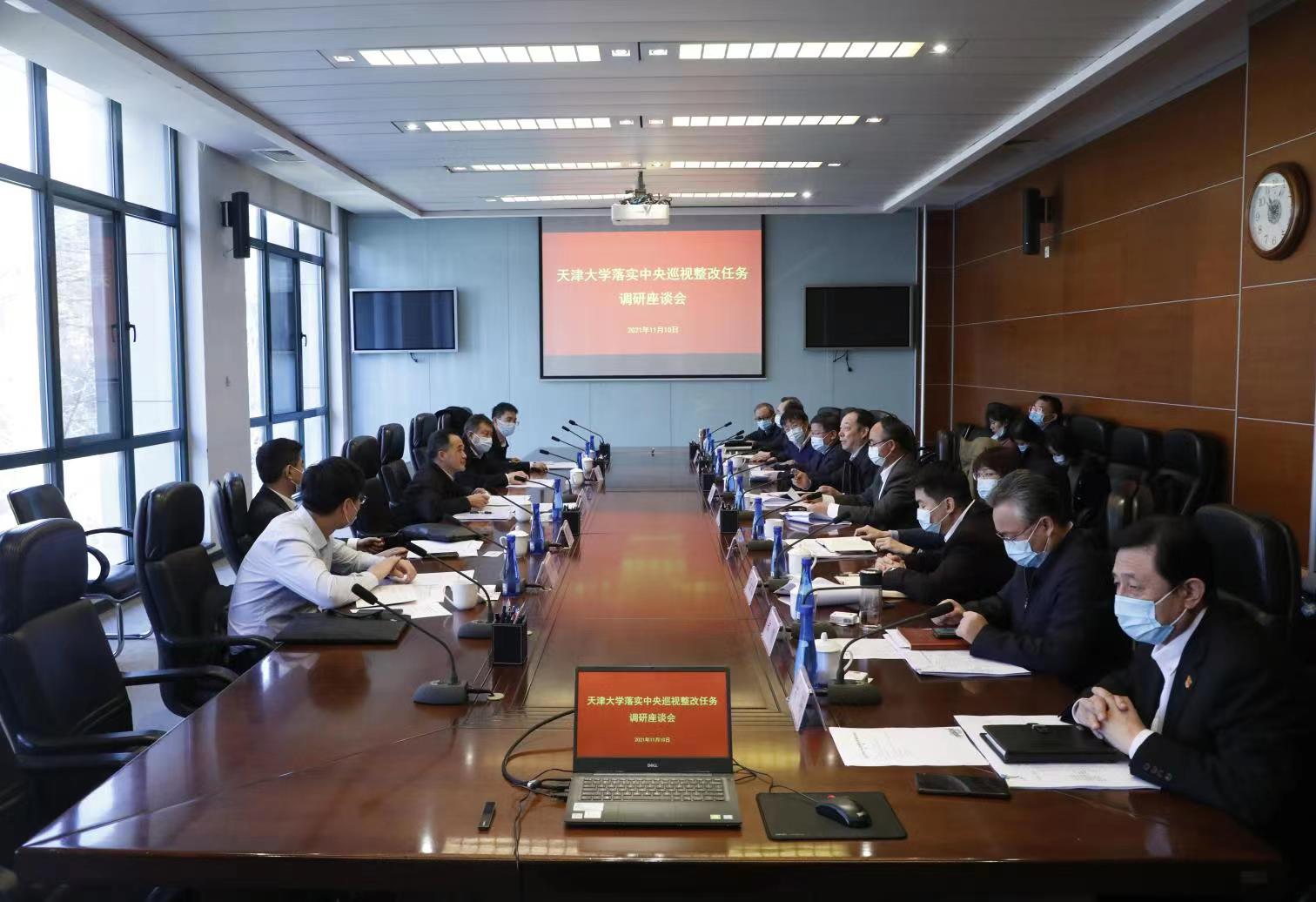 在調研座談會上,楊賢金代表學校對鄭富芝副部長一行表示歡迎,并匯報了學校巡視整改工作的主要進展、推進措施及下一步工作重點。他表示,學校黨委認真學習貫徹習近平總書記關于巡視工作的重要講話精神,把開展巡視整改作為重要政治任務,深入研究巡視反饋意見,迅速啟動整改工作,堅持從政治上抓整改,巡視整改是一次嚴肅的政治大考,沒有選擇題,全是必答題,天津大學黨委堅持“這次考試必須要得滿分100分,99分也是不合格”,切實增強巡視整改的政治自覺、思想自覺和行動自覺。學校成立了巡視整改工作領導小組,精心制定方案,細化整改措施,做到迅速行動、周密部署、精準施策,全校“一盤棋”、上下“一股繩”,在整改落實上見真章、動真格、求實效。確定了巡視整改的“任務書”“時間表”和“路線圖”,壓實責任領導和責任單位的責任。建立了督促檢查機制,定期對整改任務落實情況進行“盤點”,對賬銷號。楊賢金說,目前,巡視整改已經進入攻堅期,天津大學將全力沖刺,以必勝的決心全力以赴抓好整改,確保整改措施落地落實,以整改成效推動學校中國特色世界一流大學建設。