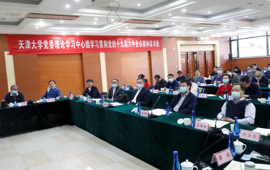 本站訊 (攝影 唐蒙)天津大學黨委理論學習中心組舉辦專題讀書班,深入學習貫徹黨的十九屆六中全會精神,校黨委書記楊賢金、校長金東寒以及校黨委理論學習中心組成員參加讀書班。