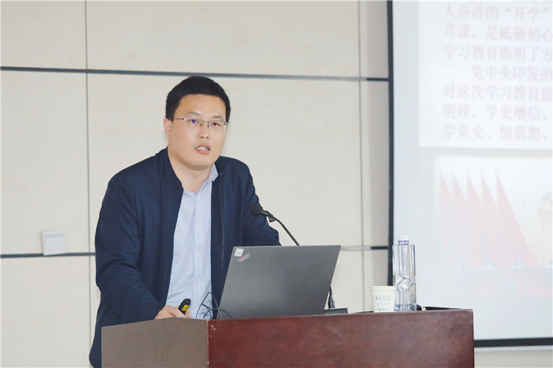 “2021年是中國共產黨建黨一百周年,在百年的奮斗歷程中,一代代中國共產黨人譜寫了一個個紅色故事、傳承了一代代革命精神。在這樣一個重要的時間節點,高校開展黨史學習教育十分重要?!睏钚ぶv解了中國共產黨成立的歷史背景,從新民主主義革命的實踐、社會主義建設的推進、改革開放的偉大飛躍、中國特色社會主義進入新時代,以及黨領導開展革命、建設、改革的基本經驗五個方面,帶領大家回顧了中國共產黨的百年發展歷程,重溫了中國共產黨發展進程中具有里程碑意義的重要事件。