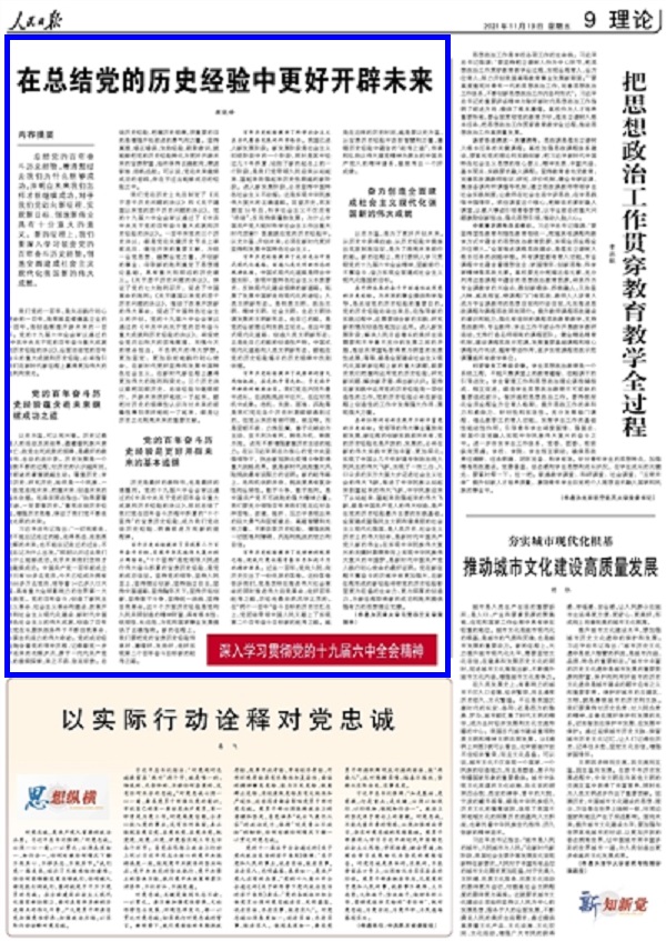 以史為鑒,是為了更好開創(chuàng)未來。從歷史中獲得啟迪、從歷史經(jīng)驗中提煉出克敵制勝法寶,是為了照亮未來前行的路。新的征程上,我們要深入學習貫徹黨的十九屆六中全會精神,堅毅前行、不懈奮斗,奮力實現(xiàn)全面建成社會主義現(xiàn)代化強國的目標。