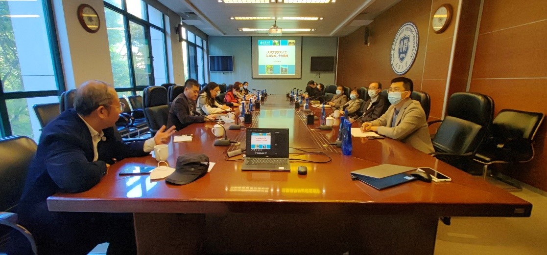 張力新在總結講話中指出,過去十年我們黨取得了巨大成就,其中三件大事對黨和人民事業具有重大現實意義和深遠歷史意義。一是迎來中國共產黨成立一百周年,二是中國特色社會主義進入新時代,三是完成脫貧攻堅、全面建成小康社會的歷史任務,實現第一個百年奮斗目標。同時習近平總書記在報告中也提出了新時代新征程中國共產黨的使命任務,為我們全面建成社會主義現代化強國、實現第二個百年奮斗目標指明了路徑、提供了遵循。統一戰線工作是中國共產黨領導下的全體中華兒女大團結大聯合,各民主黨派應一起為中國特色現代化社會主義強國而努力。天津大學作為基層一線,我們要圍繞著自己的科研發展方向教書育人、科學研究、文化傳承、服務社會、參政議政。