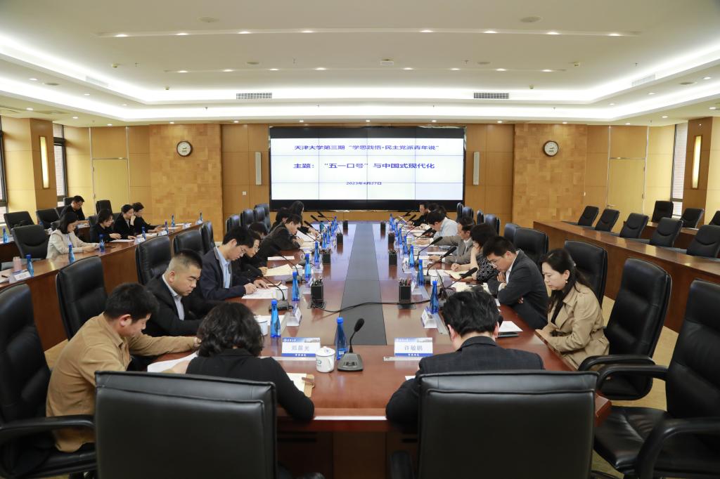 4月27日下午,在中共中央發(fā)布“五一口號”75周年之際,天津大學(xué)舉辦了“學(xué)思踐悟?民主黨派青年說”—紀念中共中央發(fā)布“五一口號”75周年活動。校黨委書記楊賢金,黨委常委、統(tǒng)戰(zhàn)部部長張俊艷參加,九三學(xué)社天津大學(xué)基層委員會主委劉國柱主持。學(xué)校各民主黨派成員及無黨派人士代表30余人齊聚天津大學(xué)北洋園校區(qū),分享對“五一口號”的學(xué)習(xí)體會。