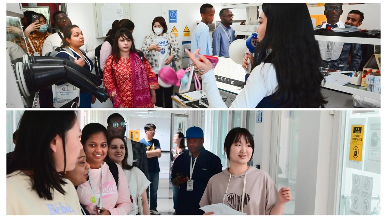在學院和實驗室參觀環節,學生們先后來到分子+研究院和藥學院,實地參觀了先進的實驗室儀器設備,了解了天大在圍繞國家發展戰略、扎實推進基礎研究、促進學科交叉融合等方面所作的積極貢獻。多名擬申請博士的國際學生在參觀過程中表現出了濃厚的興趣。