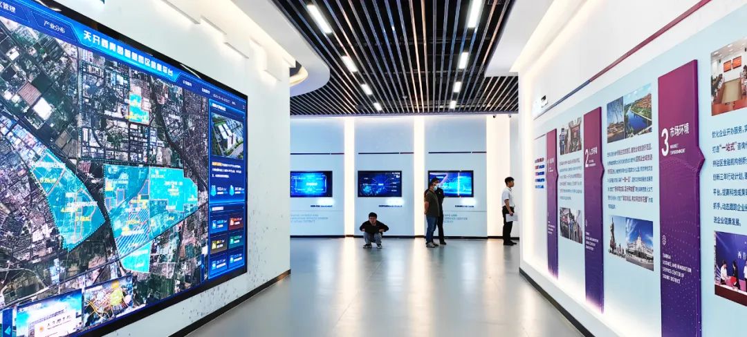 室內設計一所與設計二院等部門通力合作,現場勘察設計、現場服務、全程指導施工,歷時39天完成天開園西青園項目的設計實施工作。本次完成室內設計面積10741平方米,包括該地塊先導區外景觀、主題精神堡壘,樓體及景觀標識系統,重點主題展廳、室內展廳、綜合服務大廳、路演廳、鳥瞰接待層及配套辦公、入駐重點企業——中國醫學科學院生物醫學工程研究所辦公及配套廠房的整體設計方案及施工圖設計,設計任務保質保量完成,得到相關領導及業主的肯定及好評。