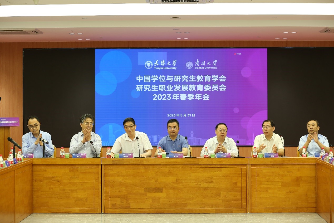本站訊 5月31日,中國學(xué)位與研究生教育學(xué)會研究生職業(yè)發(fā)展教育委員會2023年春季年會在天津大學(xué)、南開大學(xué)舉行。教育部學(xué)生服務(wù)與素質(zhì)發(fā)展中心副主任方偉、天津市政府教育督導(dǎo)室總督學(xué)王秋巖、天津市人力資源和社會保障局二級巡視員張少軍、南開大學(xué)黨委副書記牛文利、天津大學(xué)黨委副書記韓慶華以及中國學(xué)位與研究生教育學(xué)會研究生職業(yè)發(fā)展教育委員會委員單位有關(guān)同志參加了會議。會議由天津大學(xué)黨委學(xué)生工作部部長、學(xué)生處處長趙欣主持。