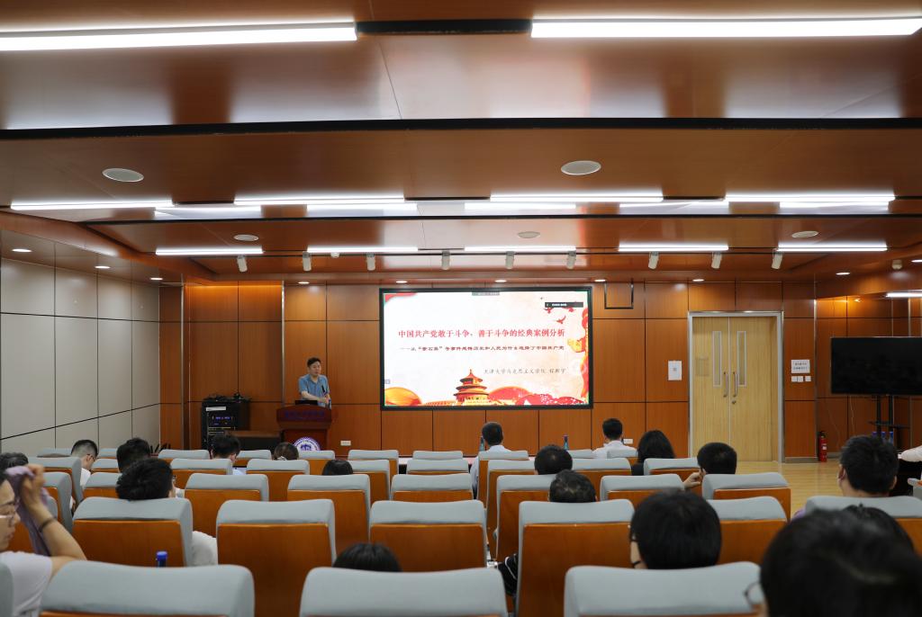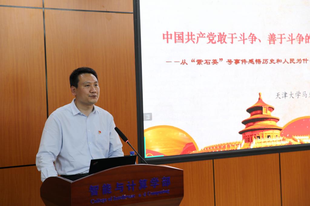 本站訊(通訊員 董會麗)為扎實開展好主題教育,引導黨員堅定理想信念,立足崗位建新功,5月26日下午,智能與計算學部邀請馬克思主義學院程斯宇老師為學部師生黨員作題為“中國共產黨敢于斗爭、善于斗爭的經典案例分析”的專題輔導報告,智能與計算學部教師黨員和學生黨支部書記60余人聆聽了報告。