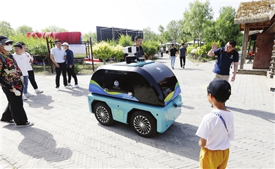 本報(bào)訊(記者 姜凝)天空中,無人機(jī)群進(jìn)行噴灑作業(yè);陸地上,無人微巴往返穿梭接駁游客,點(diǎn)單后送餐的或許是無人車和機(jī)器狗,游客還可以開無人越野車過把癮;遼闊的水域上,無人艇可載人并用于觀光,無人設(shè)備在進(jìn)行水質(zhì)監(jiān)測……6月1日,天津大學(xué)無人駕駛交叉研究中心團(tuán)隊(duì)與中汽智聯(lián)技術(shù)有限公司聯(lián)合發(fā)起,聯(lián)合天津環(huán)城城市基礎(chǔ)設(shè)施投資有限公司等48家企業(yè)在西青郊野公園進(jìn)行了一場“海、陸、空”智慧無人主題體驗(yàn)活動,并舉行了智慧郊野公園項(xiàng)目推介會暨創(chuàng)新發(fā)展聯(lián)合體揭牌儀式,該團(tuán)隊(duì)利用天大智慧無人技術(shù)將西青郊野公園打造成未來智能無人科技主題公園。