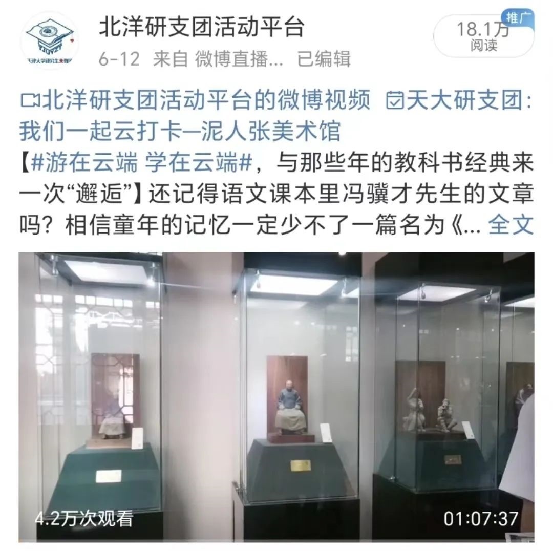 為引導西部地區中小學生了解、熱愛和傳承非遺,同時將課文中出現的藝術形象真實呈現在孩子們眼前,實現從課本到生活的跨越,體會“藝術源于生活”的真實情感,近日,天津大學研究生支教團將課堂搬下講臺,現場連線天津泥人張美術館,為孩子們上了一堂生動的實景主題教育云課堂,帶領廣大學生走進了課文中提到的泥人張彩塑的世界。