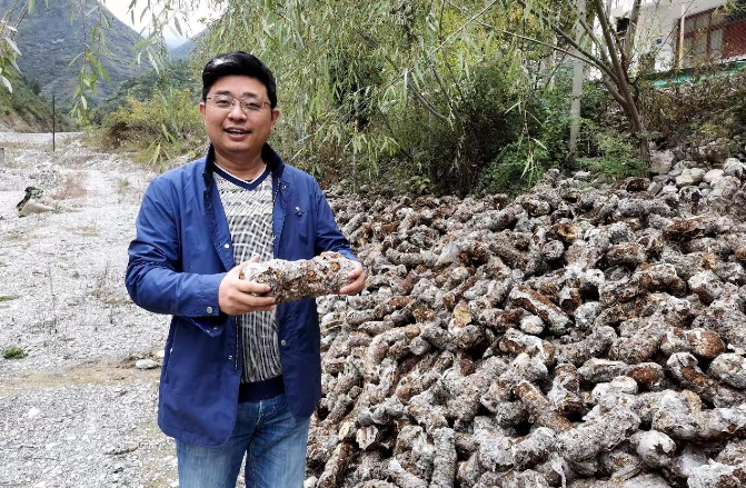 圖片一:天津大學黃俊老師在宕昌縣菌菇渣堆放現場調研