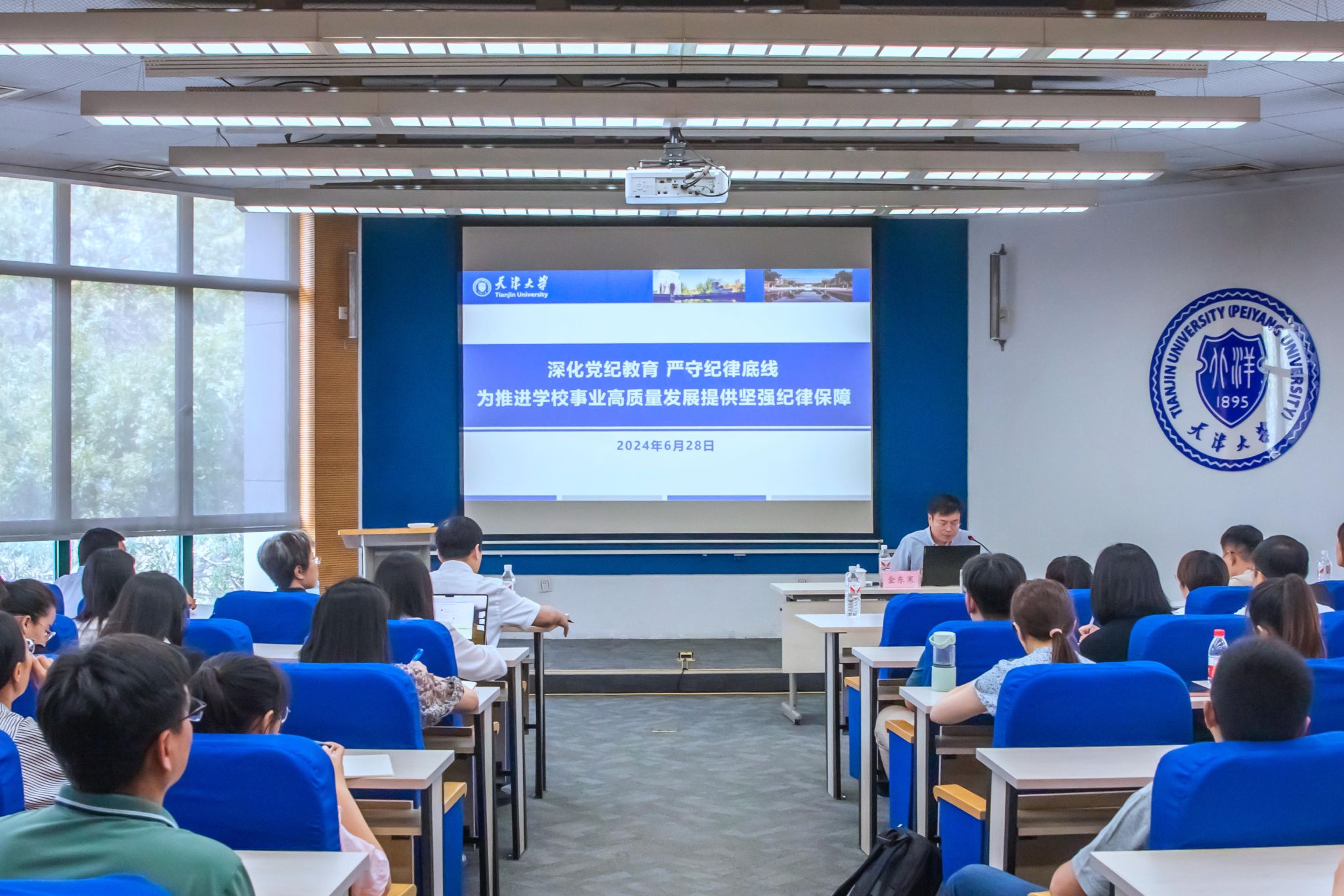 本站訊(記者焦德芳)6月28日,按照學校黨委安排部署,天津大學校長金東寒在衛津路校區會議樓為審計處、未來技術學院黨委和先進內燃動力全國重點實驗室黨支部的黨員同志們講授紀律黨課。黨課題目為:“深化黨紀教育 嚴守紀律底線 為推進學校事業高質量發展提供堅強紀律保障”。