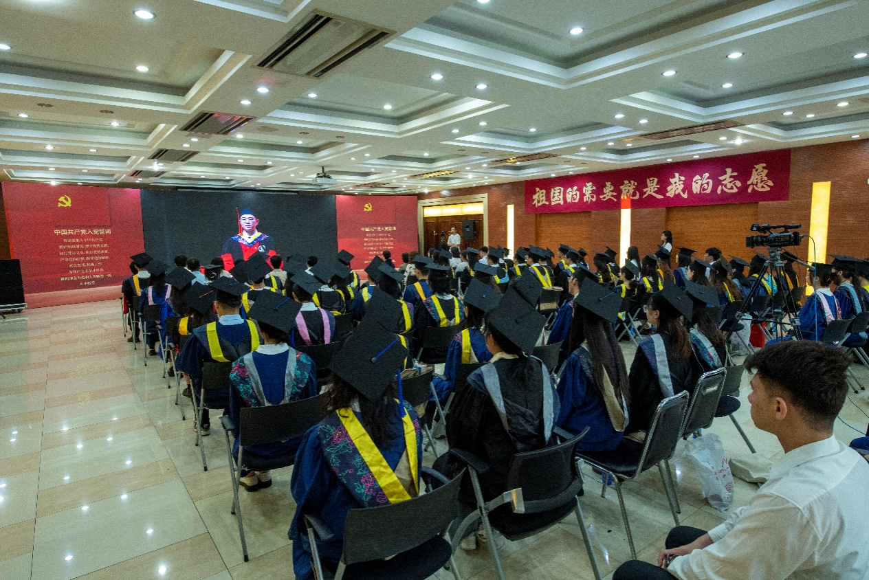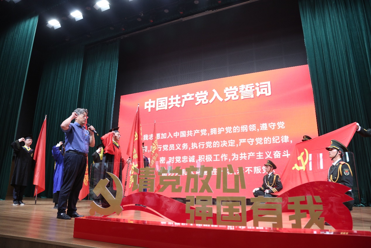 不忘初心,牢記使命。韓慶華帶領(lǐng)全體畢業(yè)生黨員代表重溫入黨誓詞。畢業(yè)生黨員代表們以“請(qǐng)黨放心,強(qiáng)國有我”的錚錚誓言,擲地有聲地表明自己將牢記初心使命,堅(jiān)定理想信念,不負(fù)時(shí)代,不負(fù)韶華,不負(fù)黨和人民的殷切期望。