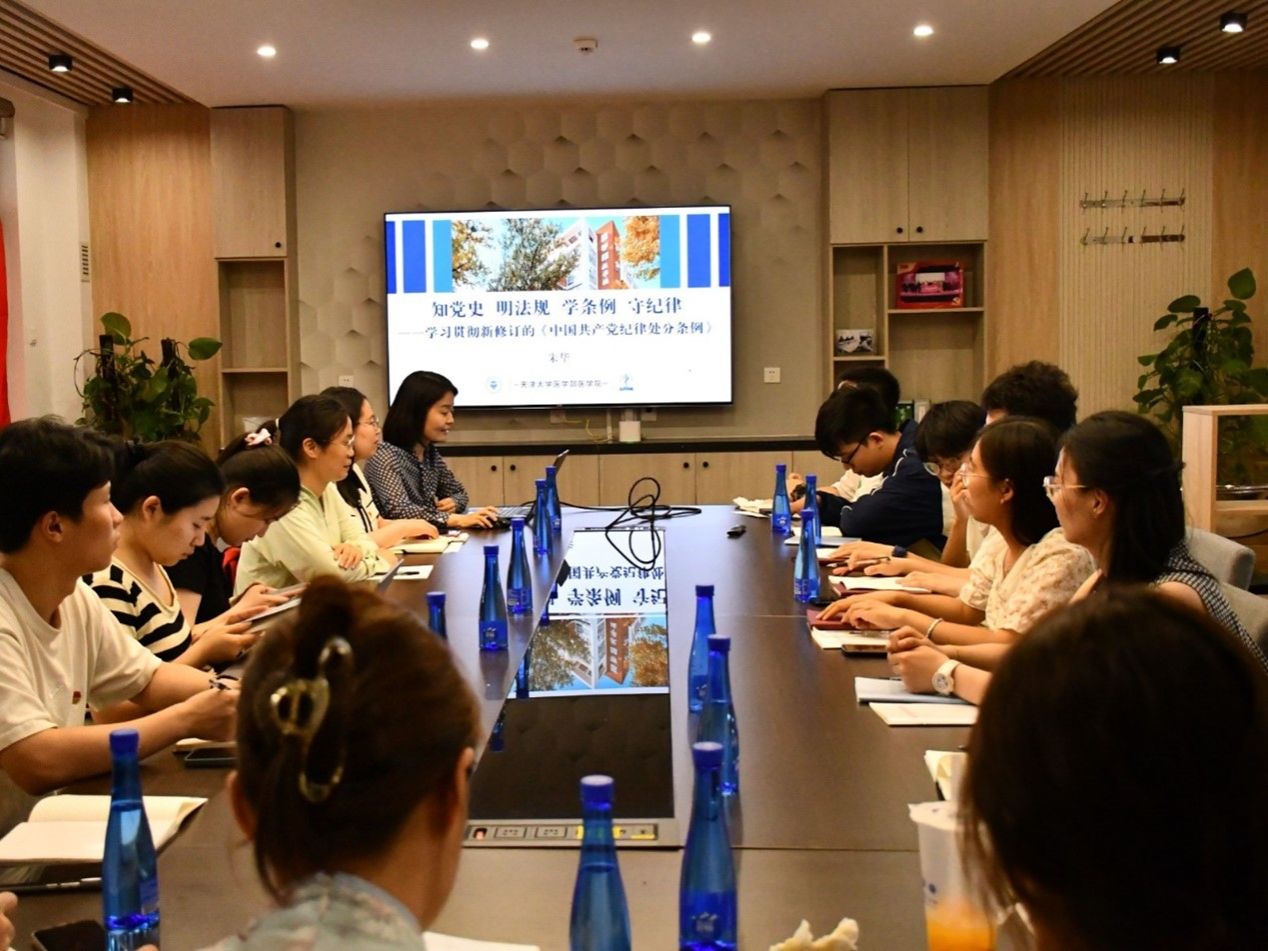 7月1日,醫學部學工隊伍于一站式學生社區鵬翔2齋黨員活動室開展“醫心向黨,共育英才”黨紀學習教育共建聯學活動