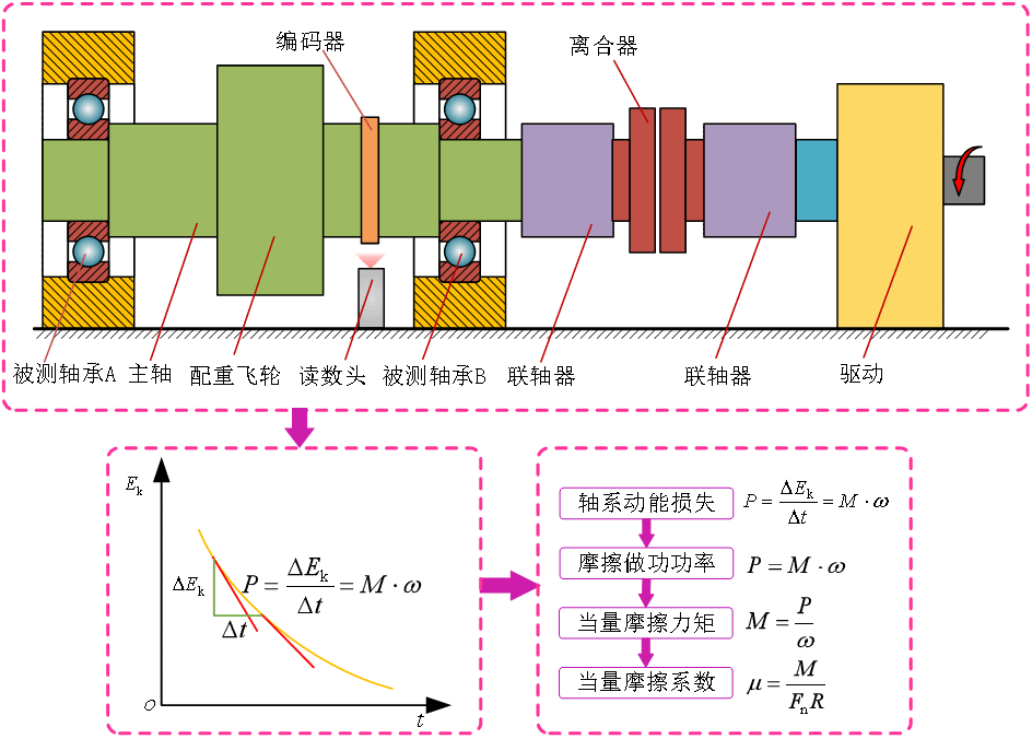 據(jù)悉,傳統(tǒng)上往往使用平衡法、傳遞法等直接測量摩擦力矩,測量中需要軸承保持勻速轉(zhuǎn)動,并且受限于力矩傳感器的精度和操作等影響。本研究放棄直接測力矩,從能量角度入手,使用高精度磁柵角速度傳感器,通過觀察減速過程,捕捉動態(tài)的摩擦特性,揭示出軸承摩擦特性隨轉(zhuǎn)速動態(tài)變化的規(guī)律?;诖?,團隊可以用一個無量綱系數(shù)——當(dāng)量摩擦系數(shù)綜合評價不同軸承的摩擦表現(xiàn),成功將同一批次的十個高精度軸承按摩擦性能進行了排序,多次驗證均得到相同結(jié)果,這是傳統(tǒng)方法無法實現(xiàn)的。