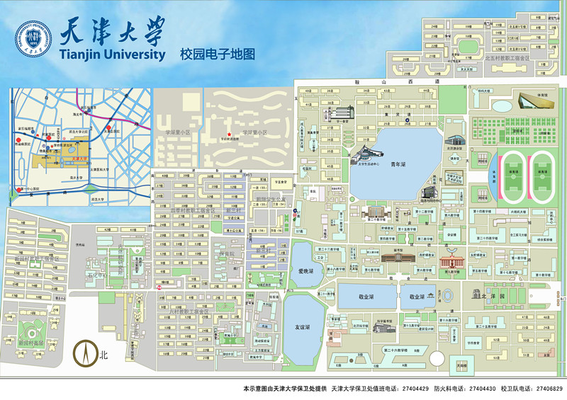 天津大學(xué)衛(wèi)津路校區(qū)占地總面積182萬(wàn)平方米,建筑面積142.5萬(wàn)平方米。學(xué)校校園環(huán)境整潔,景色優(yōu)美,被譽(yù)為花園式學(xué)校,每年4月中旬的海棠季吸引上萬(wàn)市民前來(lái)參觀。學(xué)校有兩座總建筑面積為2.6萬(wàn)平方米的圖書(shū)館,館藏書(shū)刊總量260.34萬(wàn)冊(cè),另有多種音像資料、微縮資料和各類光盤數(shù)據(jù)庫(kù)。